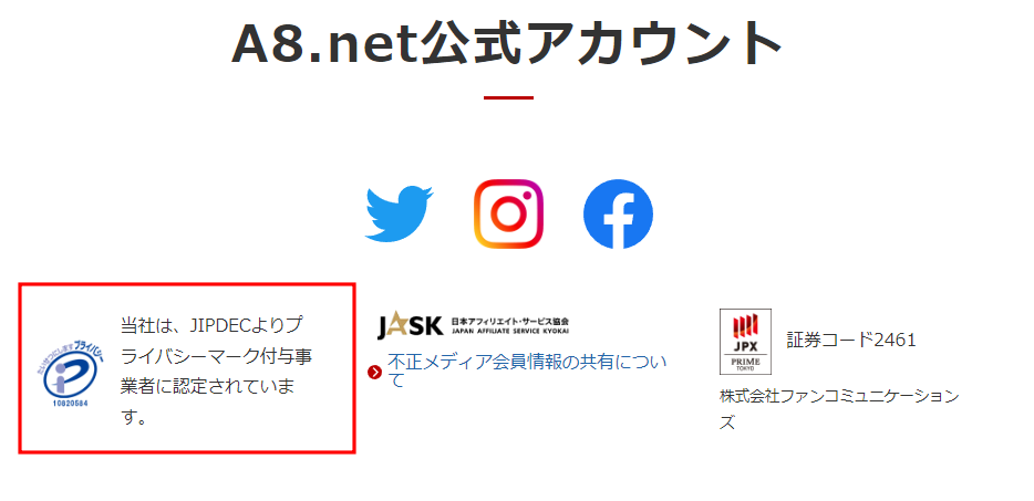 社会的信頼性が高く、一定の信用がおける会社によってA8ネットのサービスは運営されています。