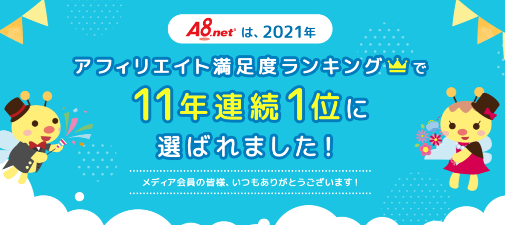 アフィリエイトマーケティング協会が実施したアンケートでは、2011年から11年連続利用者満足度No.1を獲得。