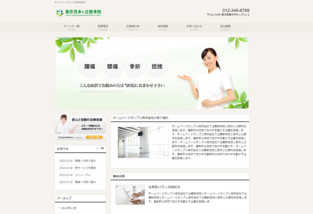 サンプル①病院のホームページ