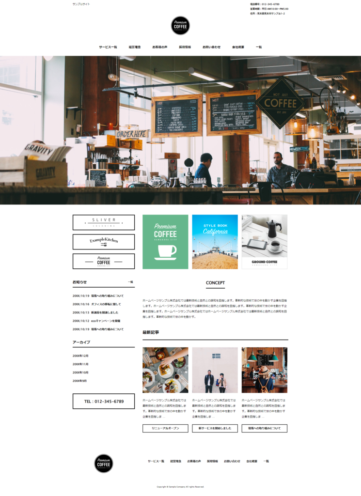 サンプル②カフェのホームページ